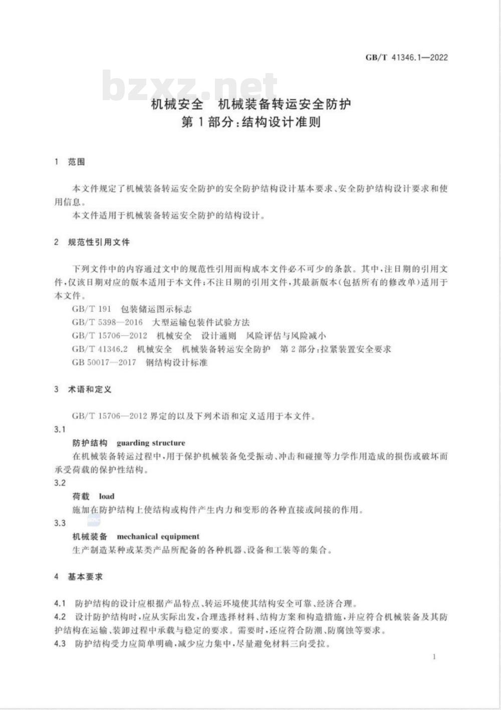英文名称:Safety of machinery—Transportation protection for machinery equipment—Part 1:Specifications for structure design