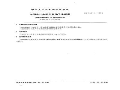 车间空气中硝化甘油卫生标准
