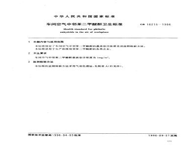 本标准的监测检验方法采用气相色谱法,见附录A(补充件)。国家技术监督局1996-04-03批准1996-09-01实施