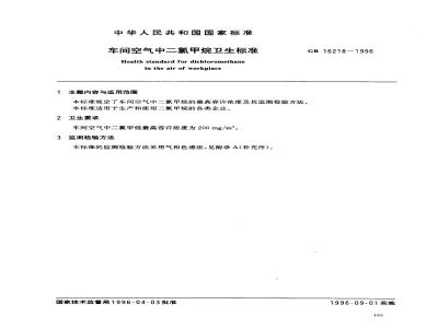 本标准规定了车间空气中二氯甲烷的最高容许浓度及其监测检验方法。本标准适用于生产和使用二氯甲烷的各类企业。 GB 16218-1996 车间空气中二氯甲烷卫生标准 GB16218-1996 标准下载解压密码:www.bzxz.net