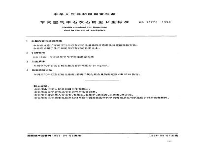 本标准规定了车间空气中石灰石粉尘最高容许浓度及其监测检验方法。本标准适用于生产和使用石灰石的各类企业。 GB 16226-1996 车间空气中石灰石粉尘卫生标准 GB16226-1996 标准下载解压密码:www.bzxz.net