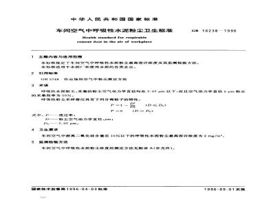 本标准规定了车间空气中呼吸性水泥粉尘最高容许浓度及其监测检验方法。本标准适用于水泥厂和使用水泥的各类企业。 GB 16238-1996 车间空气中呼吸性水泥粉尘卫生标准 GB16238-1996 标准下载解压密码:www.bzxz.net
