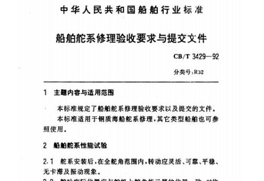 CB/T 3429规定了船舶舵系修理验收要求以及提交的文件。