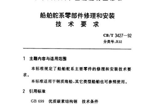 CB/T 3427规定了船舶舵系主要零件的修理和安装技术要求。