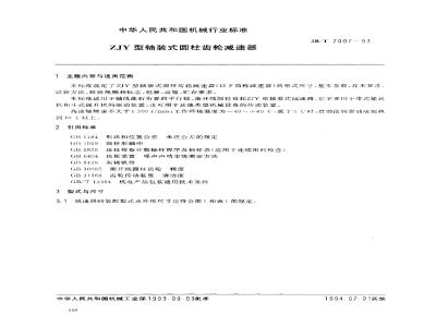 本标准规定了ZJY型轴装式圆柱齿轮减速器的型式尺寸,基本参数,技术要求,试验方法,检验规则和标志,包装、运输、贮存要求。 本标准适用于轴线曲折布置的平行轴、渐开线圆柱齿轮ZJY型轴装式减速器。它主要用于带式轮送机和斗式提升机的驱动装置,也可用于其它类型机械设备的传动装置。 高速轴转速不大于1500r/min;工作环境温度为-40~ 40℃,低于5℃时,启动前润滑应预热到10℃以上。 JB/T 7007-1993 ZJY型轴装式圆柱齿轮减速器 JB/T7007-1993 标准下载解压密码:www.bzxz.net