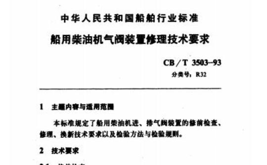 CB/T 3503规定了船用柴油机进、排气阀装置的修前检查、修理、换新技术要求以及检验方法与检验规则。