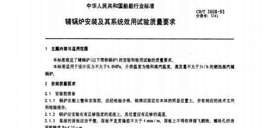 本标准规定了辅锅炉(以下簡殊锅炉)的安装和效用试验的质量要求。CB/T 3608-93Www.bzxZ.net