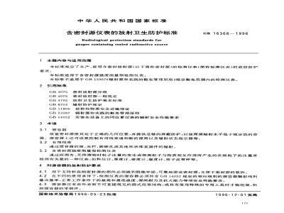 本标准规定了生产、使用含密封放射源的检测仪表的放射防护要求。本标准适用于含密封源强度测量型检测仪表。本标准不适用于GB 13367《辐射源和实践的豁免管理原则》规定豁免范围内的检测仪表。 GB 16368-1996 含密封源仪表的放射卫生防护标准 GB16368-1996 标准下载解压密码:www.bzxz.net