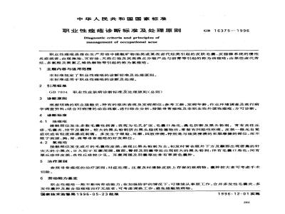 职业性痤疮诊断标准及处理原娜Diagnostic criteria and principles ofmanagement of occupational acneGB16375--1996