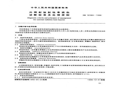 本标准规定了外照射放射性骨损伤诊断标准及处理原则。GB16389-1996