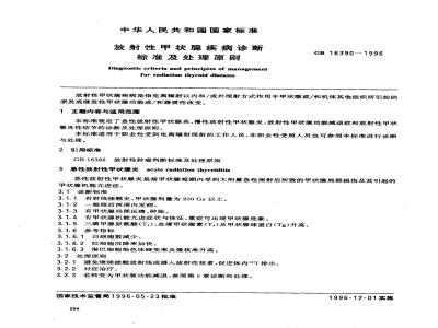 Diagnostic criteria and principles of managementfor radiation thyroid diseasesGB 16390--1996