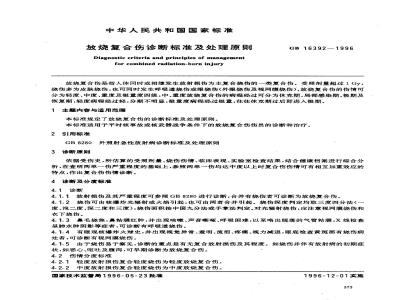 放烧复合伤诊断标准及处理原则Diagnostic criteria and principles of managementfor combined radiation-burn injuryGB 16392—1996