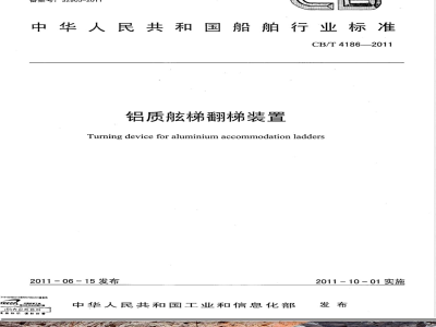 本标准是国家标准调整为行业标准的项目,原国家标准编号为GB/T14362一1993。本标准与GB/T14362-1993《铝质航梯翻梯装置》相比主要技术变化如下:a)将原标准定义为I型,规格由10档增加到22档踏步级数的铝质梯翻梯装置;b)增加了II型,规格为28档踏步的铝质航梯翻梯装置:c)增加与固定弧形踏步铝质航梯一起做台架试验要求;请注意本文件的某些内容可能涉及专利。本文件的发布机构不承担识别这些专利的责任。本标准由中国船舶重工集团公司提出。本标准由中国船舶工业综合技术经济研究院归口。本标准起草单位:大连船舶重工集团有限公司、江苏姜堰市船舶装件有限公司。本标准起草人:曲德选、杨社建、蔡伟玄、张萍、马玉龙、杨霖。1范围
