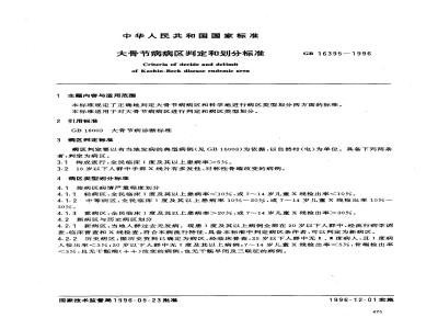 3.1构成流行,全民临床度及其以上患病率>5%。3.216岁以下人群中手部X线片有多发性、对称性骨端改变的病例。4病区类型划分标准