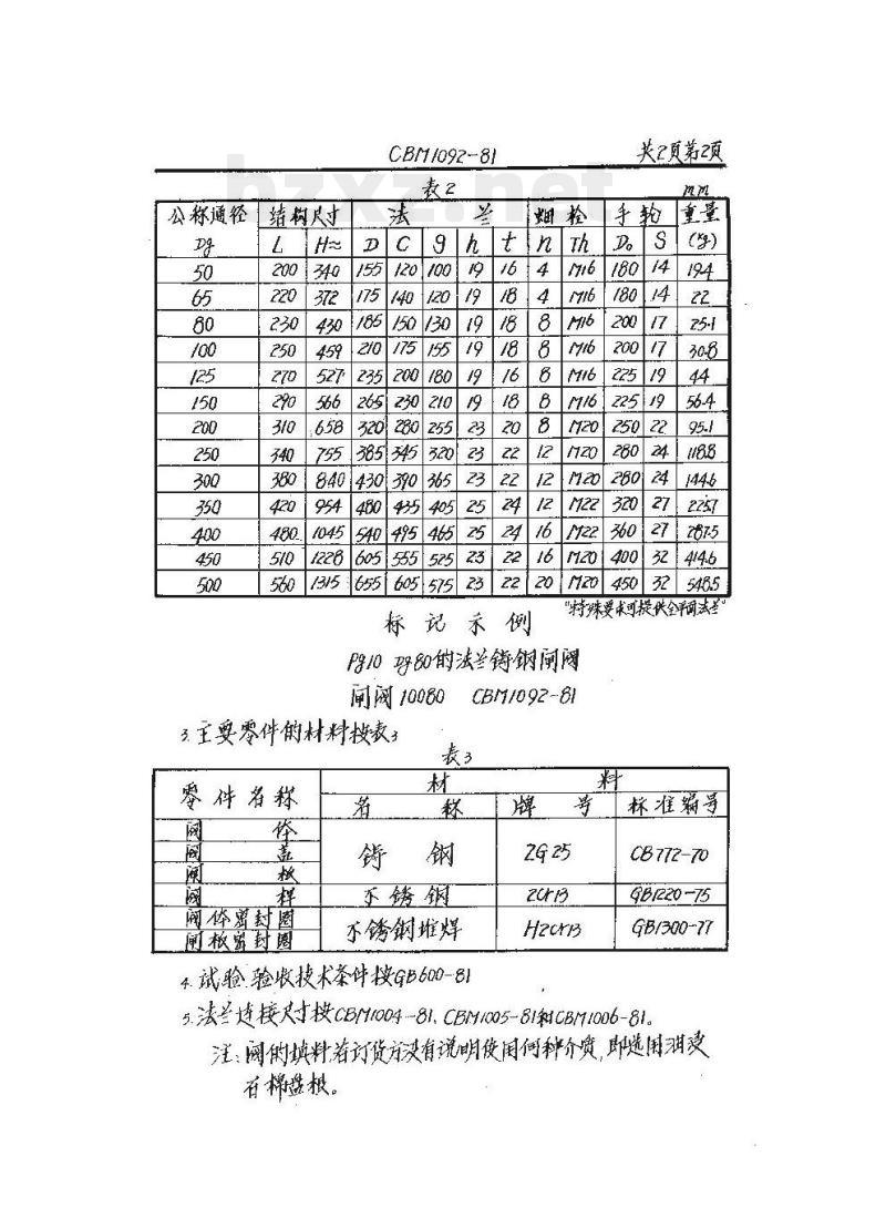 CBM 1092法兰建按尺寸与JIS BZ212一1971-致,结构大 与JIS 下7366一1975-致,共它尺寸符合CB466-76。