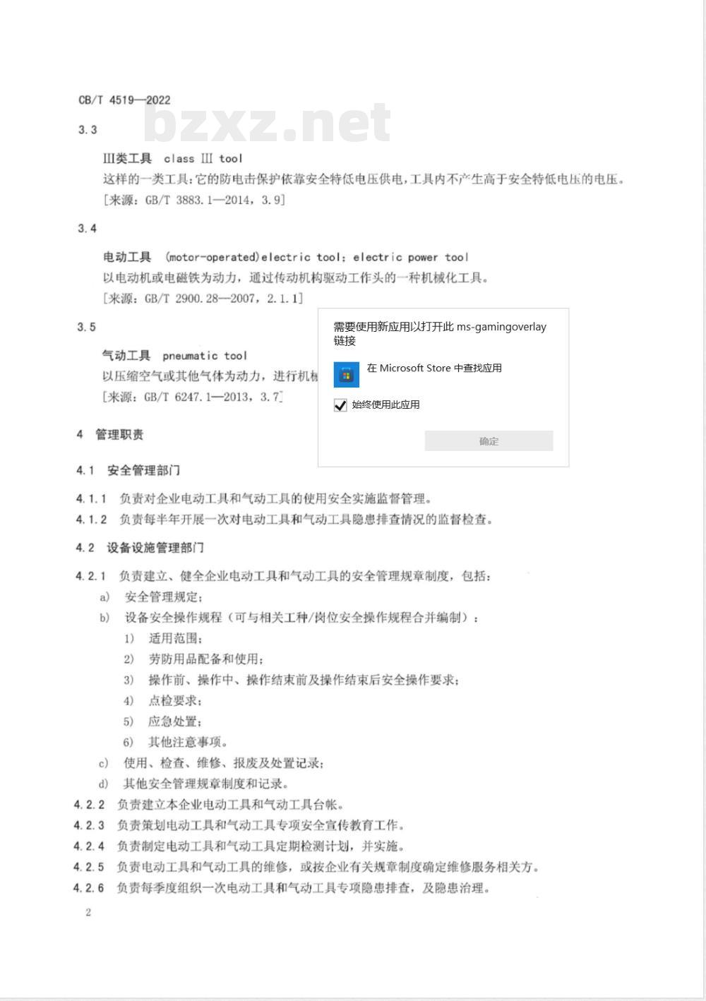 船舶行业企业电动工具和气动工具安全管理规定本文件规定了船舶行业企业(以下简称企业)电动工具(包括手持式和可移动式)和气动工具的管理职责、安全使用要求、安全检查维护要求。本文件适用于对企业电动工具和气动工具印需要使用新应用以打开此ms-gamingoverlay2规范性引用文件