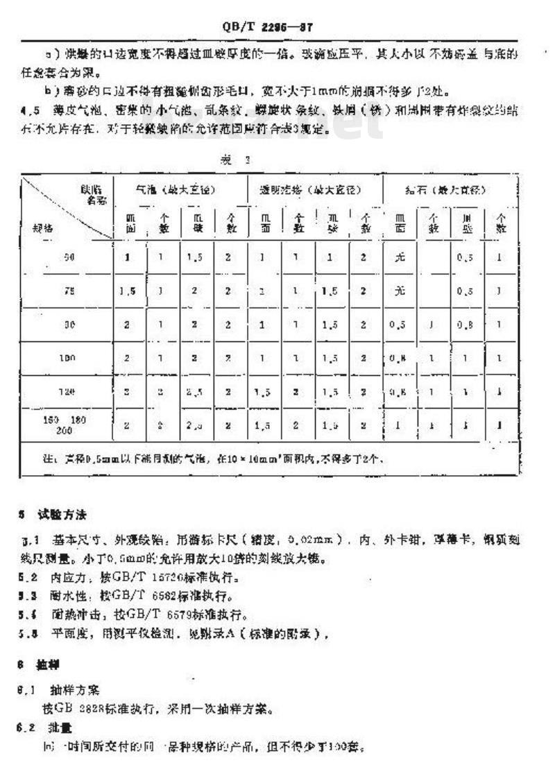 6,3,1A类包括耐水性和耐热冲击,抢查水平按特殊检查水平S--2,合格质量水平为1.6。B.8.2B类包括除A类以外的其它项月,检查本乎拨一般按变水平),含榜版题水平为4.0。白4出检验