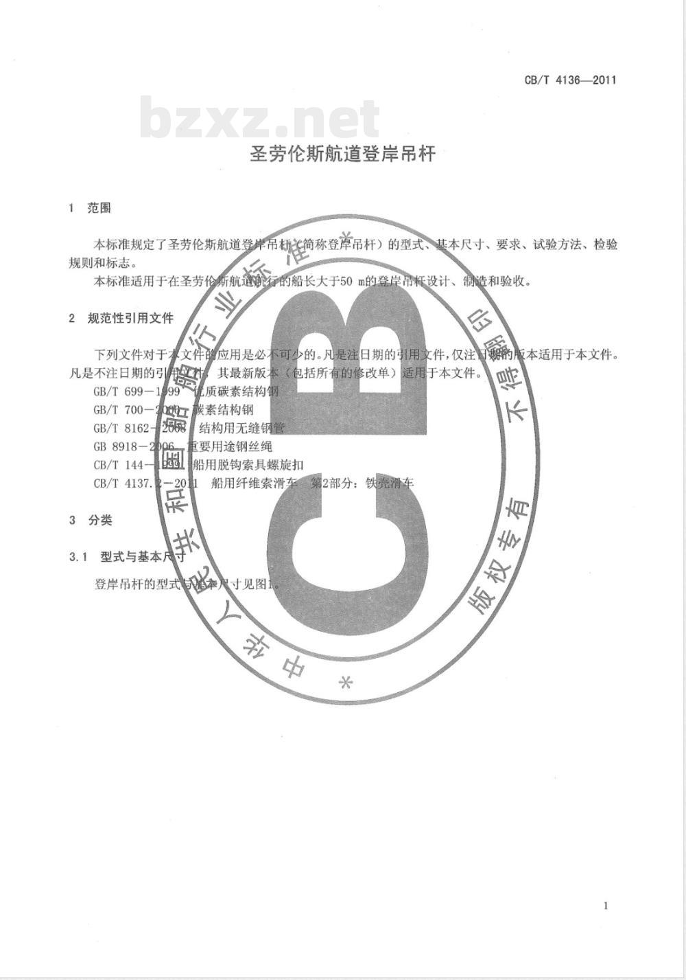 本标准适用于在圣劳伦斯航道就行的船长大于50m的登岸吊杯设计、制造和验收。2规范性引用文件