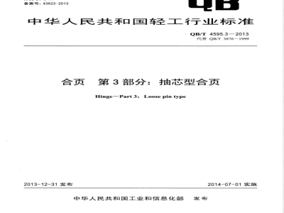 QB/T4595《合页》为系列标准,目前现有6个部分,包括:第1部分:普通型合页;