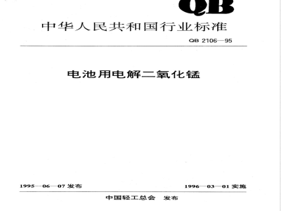 本标准适用于以电解方法制得的工业二氧化锰,主要用于干电池工业。引用标准