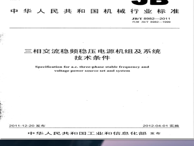 Specification for a.c. three-phase stable frequency anovoltagepower source set and system2011-12-20 发布