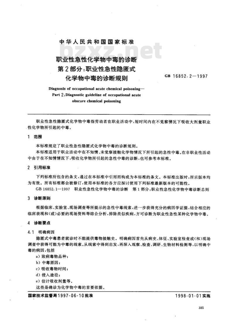 下列标准所包含的条文,通过在本标准中引用而构成为本标准的条文。本标准出版时,所示版本均为有效。所有标准都会被修订,使用本标准的各方应探讨使用下列标准最新版本的可能性。GB16852.1一1997职业性急性化学物中毒的诊断第1部分:职业性急性化学物中毒诊断总则3诊断原则