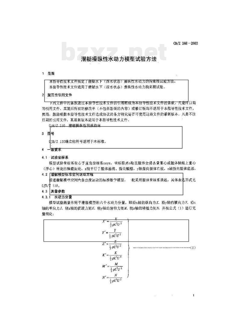 CB/Z 268适用于潜艇水下( 深水状态)操纵性水动力拘束模试验。
