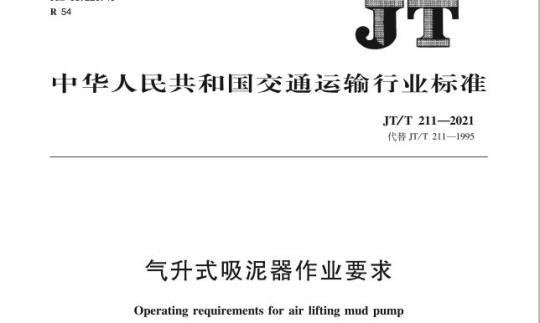 JT/T 211适用于在沉船打捞、海洋工程中使用气升式吸泥器作业。