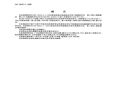 本标崔由国家机械工业局提出。本标准由全国电器附件标准化技术委员会归口。本标准起草单位:广州电器科学研究所、奇胜电器(惠州)工业有限公司、TCL国际电工有限公司、杭州鸿雁电器公司、北京四通松下电工有限公司、中山朗能电器实业公司。本标准主要起草人,罗怀平、王可健、孔军、何伟恩、杨国贤、车宇、利柱棠。本标准委托全国电器附件标准化技术委员会解释。:comGB16915.3—2000