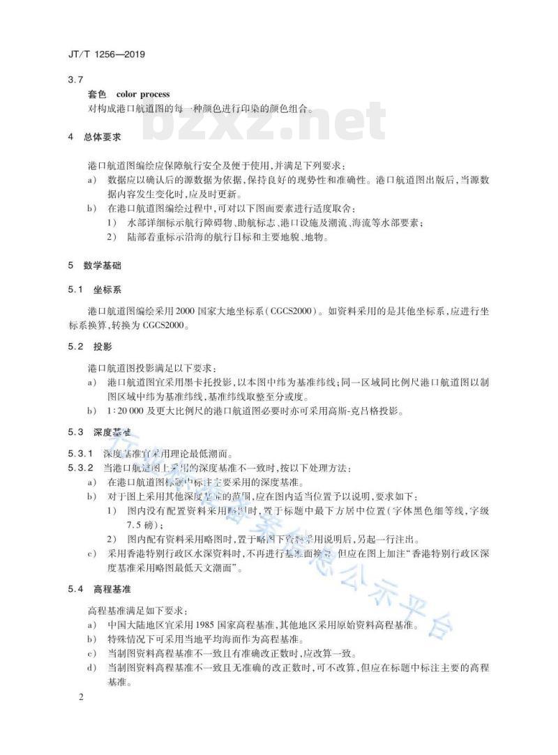 JT/T 1256-2019 Specifications for compilation technology of port and fairway charts.