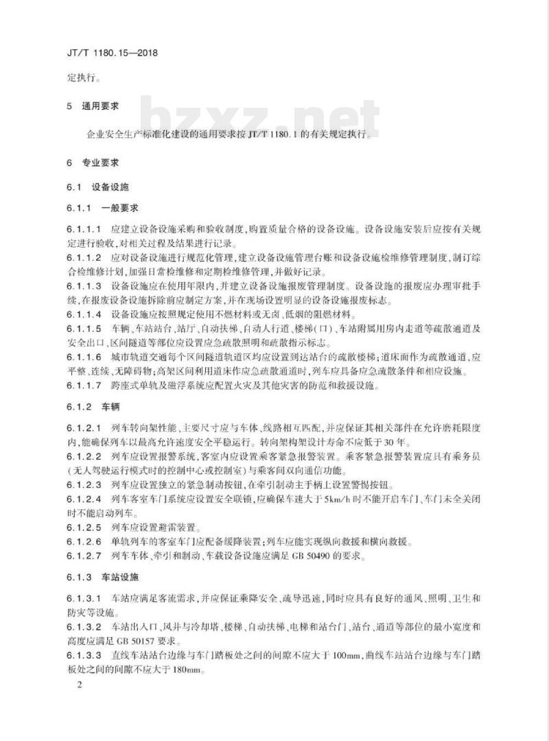 交通运输企业安全生产标准化建设基本规范第15部分:城市轨道交通运营企业Basic norms for work safety standardization of transportation enterprises-Part15:Urbanrailtransitoperationenterprises2018-02-26发布
