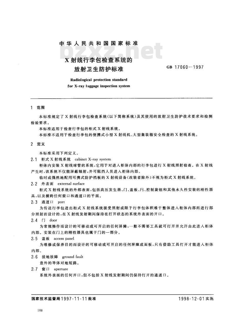 Radiological protection standardfor X-ray luggage inspection systemGB 17060-1997