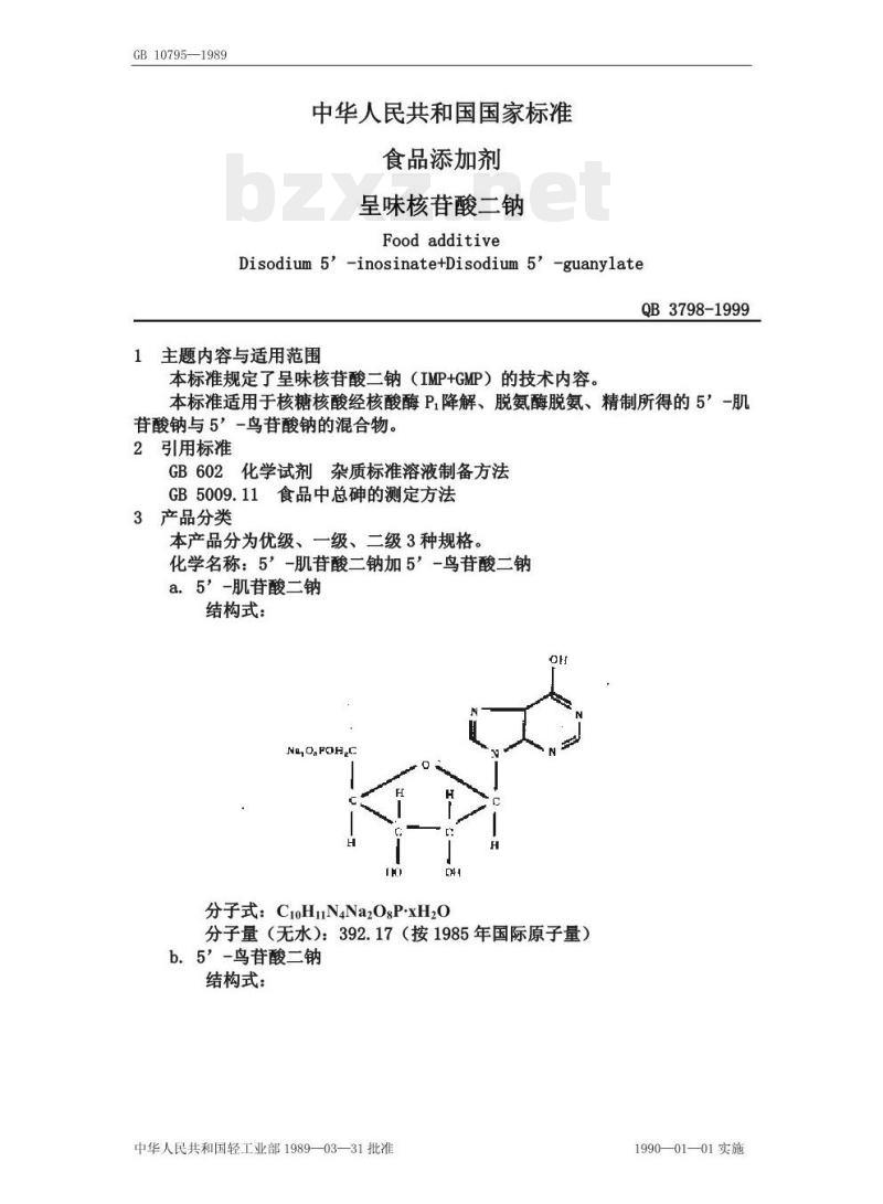 QB 3798-1999.Food additive Disodium 5’一inosinate+Disodium 5’-guany1ate.