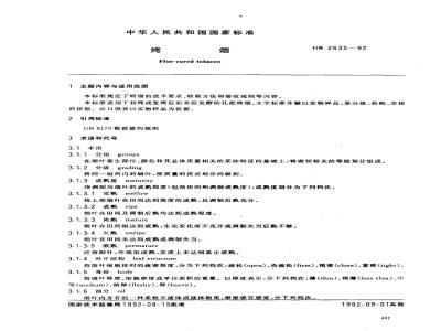 本标准规定了烤烟的技术要求、检验方法和验收规则等内容GB 2635—92