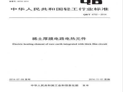 本标准适用于额定电压不超过250V的单相器具或额定电压不超过400V的其他器具中使用的稀土厚膜电路电热元件。