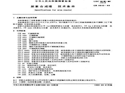 3.1尿素合成塔的受压元件材料和与腐蚀介质接触的材料必须具有质量合格证明书。3.2不锈钢(包括熔金属)的要求。中华人民共和国化学工业部1988-08-16批准1989-03-01实施