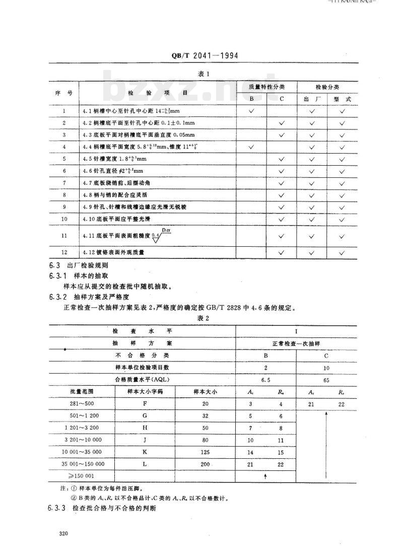 B类的A、R。以不合格品计,C类的AR。以不合松数计。6.3.3检查批合格与不合格的判断320