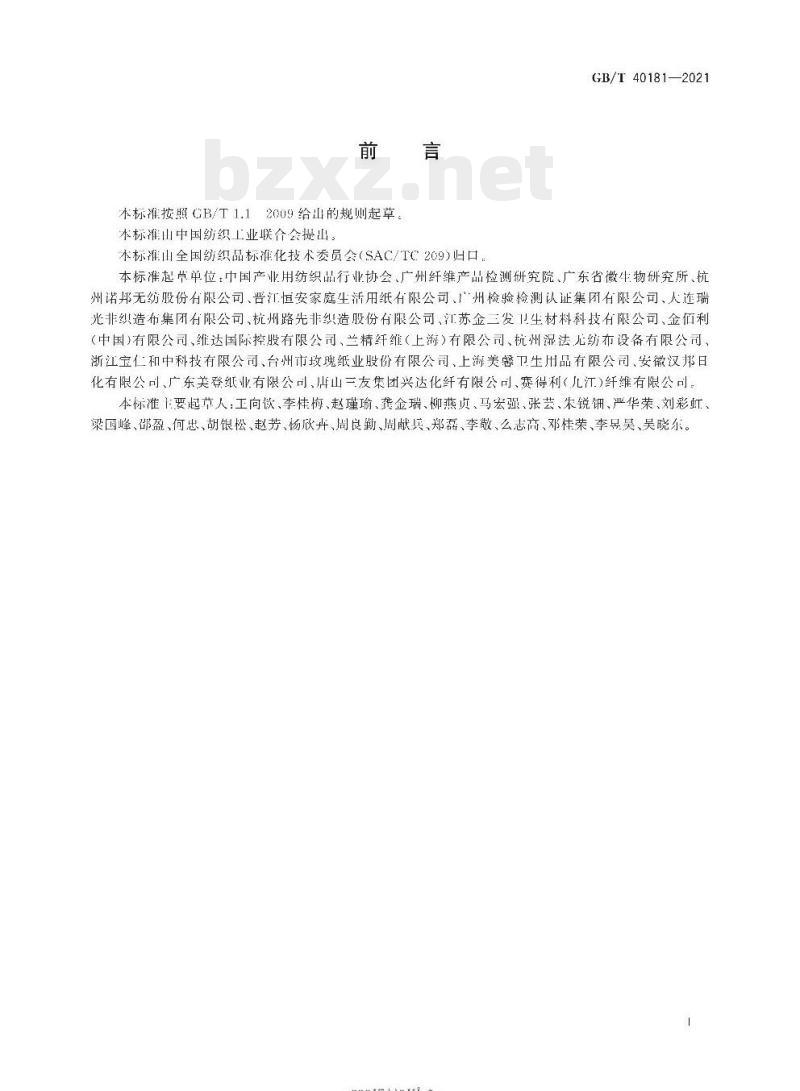 本标准按照GB/T1.12009给出的规则起草。本标滩由中国纺织工业联合会提出。本标雅山全国纺织品标准化技术委员会(SAC/TC209)归口:GB/T40181—2021