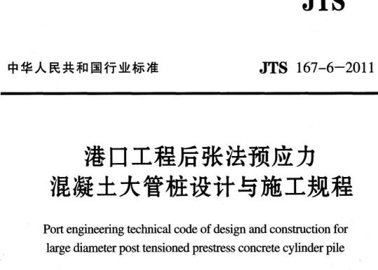 1.0.2 JTS 167-6适用于港口工程后张法预应力混凝土大管桩的设计与施工,船厂水工建筑物工程、通航建筑物工程等可参照使用。