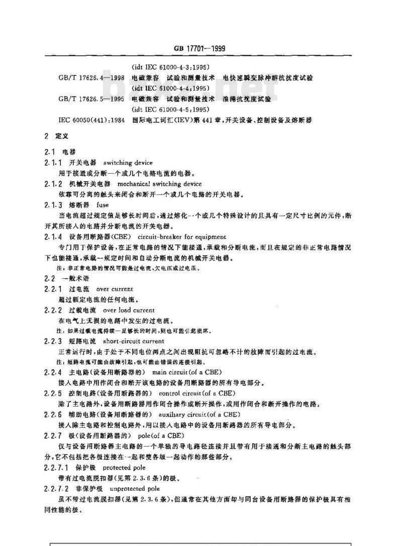 本标准从1999年3月23日起首次发布。本标准的附录 A,附录B、附录 C、附录D.附录E,附录 G都是标准的附录;附录 F为提示的附录本标准由国家机械工业局提出。本标准由全国低压电器标准化技术委员会归口,本标准起革单位:上海电器科学研究所。本标准主要起草人:周海麟、林林。GB 17701—1999