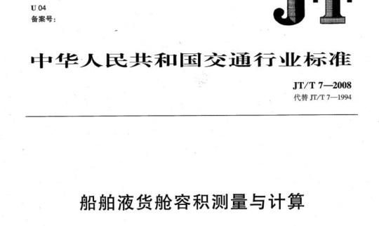 JT/T 7-2008 Measurement and calculation of the capacity of ship's liquid cargo tank.