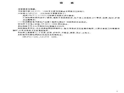 -取消原标准中散装产品微当物指弥按出和销件的分案规定。本标准自实之口起,2711一19%同时度止本标座由中华人共和国卫气部提湖Ji-归口本标准起草单位,北京市表病预防控制中心,失市食品卫生监督冷验所、人津市食品工生监督检验所、而东省合品止生监专检验所木标窄兰要起草人:丁秀荧,张泽,何中片、王桂香、进、张止,土地点,本标准所代替标准的炉次版本发布情况为:GB2711—1US:,C271E1993.