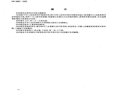 本标雅从2001年1月1日起实施。本标准由中华人民共和国卫生部和航空航天工业部提出。本标推的附录A是标雄的附录。