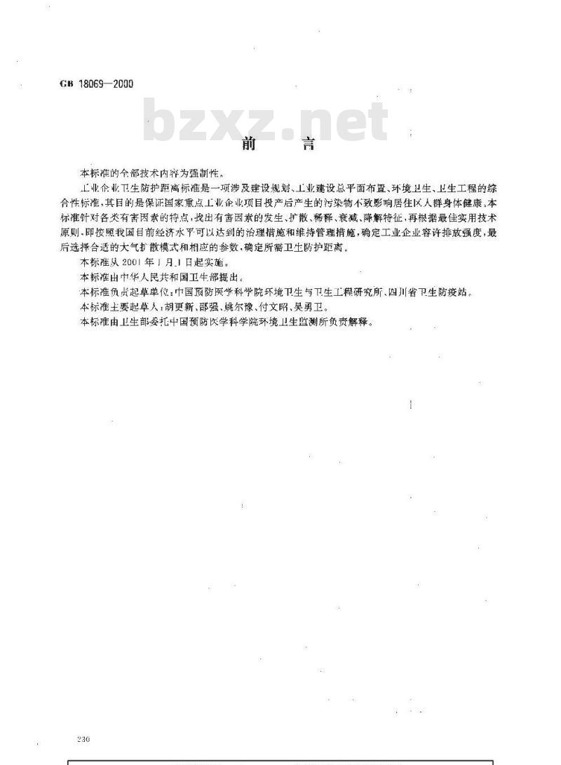 本标准出中华人民共和国卫生部提出。本标准负贵起草单位:巾国预防医学科学院环境卫生与卫生工程研究所、四川省卫生防渡站。本标准王要起草人:胡更新、邵强,姚尔豫、付文昭、昊勇卫。本标难由卫生部委托中国预防医学科学院环境卫生监测所负责解释。230