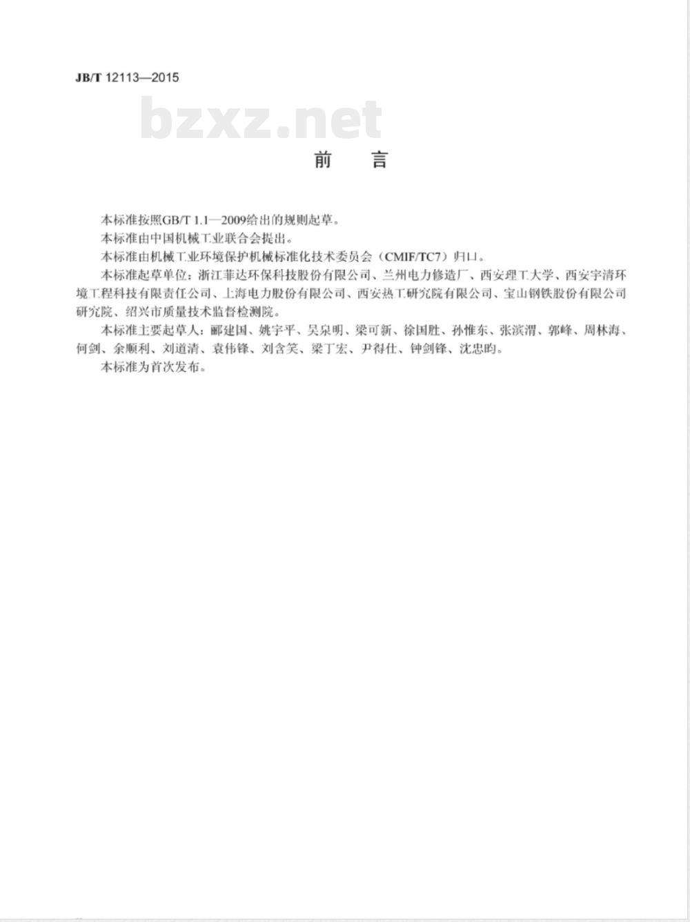 本标准按照GB/T1.1一2009给出的规则起草本标准由中国机械工业联合会提出。本标准由机械T业环境保护机械标准化技术委员会(CMIF/TC7)归口。本标准起草单位:浙江菲达环保科技股份有限公司、兰州电力修造厂、西安理工大学、西安宇清环境工程科技有限责任公司、上海电力股份有限公司、西安热工研究院有限公司、宝山钢铁股份有限公司研究院、绍兴市质量技术监督检测院本标准主要起草人:郦建国、姚宇平、吴泉明、梁可新、徐国胜、孙惟东、张滨渭、郭峰、周林海、何剑、余顺利、刘道清、袁伟锋、刘含笑、梁丁宏、尹得仕、钟剑锋、沈忠的。本标准为首次发布。