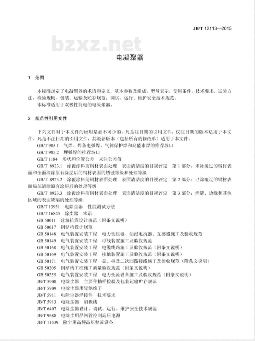 包装、运输及贮存应符合JB/T5908的规定。调试、运行、维护安全技术规范电凝聚器调试、运行、维护安全技术规范应符合JB/T6407的规定JB/T12113-2015