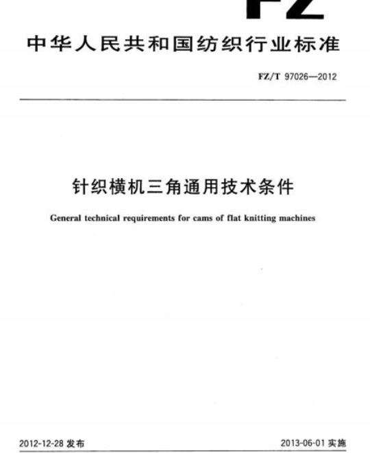 FZ/T 97026规定了针织横机三角的技术要求.试验方法及检验规则。