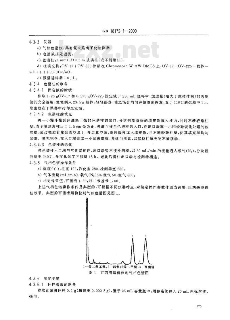 e)载体:ChromasorbWAW-DMCS,150μm~180μm(或性能相当的其他载体);f)内标溶液:称取1.65g邻二苯基苯于1000ml容量瓶中,用二甲苯溶解并稀释至刻度,摇勾。674