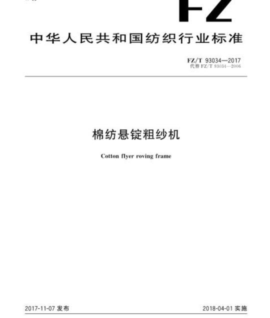 FZ/T 93034适用于棉及纤维长度在65mm以下化纤等其他纤维的纯纺.混纺的棉纺悬锭粗纱机。
