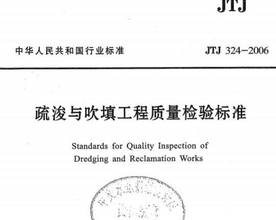 JTJ 324-2006 Standards for Quality Inspection of Dredging and Reclamation Works.